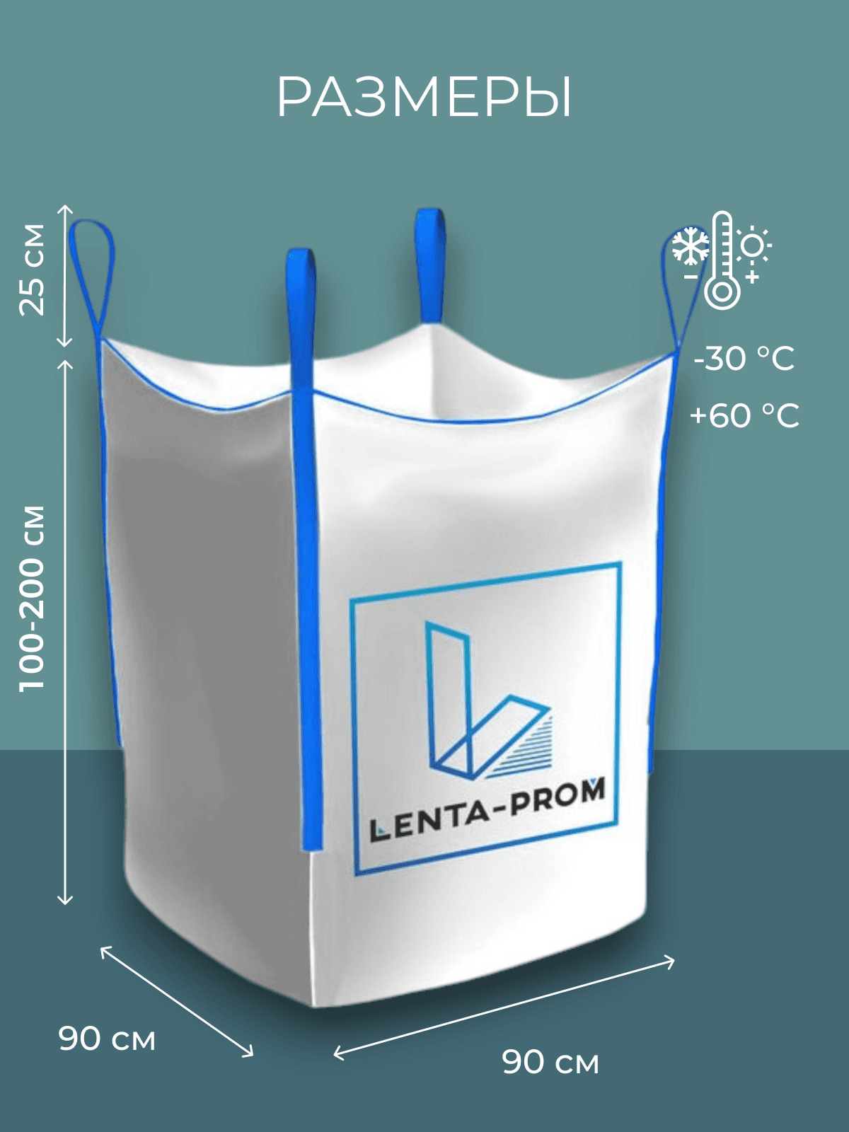 Характеристики: - Верх открытый - Дно глухое - Ширина 90х90 см - Высота 100-200 см Мягкие контейнеры (МКР, Биг-Бэг) используются для транспортировки и хранения сыпучих грузов (зерновые культуры, семена, цемент, песок, сахар, соль, строительные смеси, известь, сера, щебень, керамзит, уголь и др.), для упаковки и перевозки зерновых, железорудных, строительных материалов, компоста, пищевых продуктов. Большой биг бэг мешок для переезда или для строительного мусора – очень удобный и практичный вариант. Данная модель контейнера имеет габариты по основанию 90х90 см, высотой 100-200 см. Объём загружаемой продукции составляет 0,8-2 м3. Конструкция данного полипропиленового мешка предусматривает наличие четырех ленточных строп, верх открытый, низ глухой. Основа пошива биг-бэга — полипропиленовая ткань. Плотность используемой ткани составляет от 140 до 200 г/м2, что гарантирует грузоподъёмность биг-бэга до 1500 кг (1,5 тонны). В состав ткани входят светостабилизирующие элементы, что позволяет дольше хранить биг бег мешок под лучами солнца. Рекомендуется защищать от атмосферных осадков. Биг-беги имеют ряд преимуществ по сравнению с традиционными упаковочными материалами: - Обладают небольшим весом и объемом, что позволяет экономить на грузоперевозках; - Позволяют штабелировать содержимое; - Имеют высокую грузоподъемность; - Сохраняют низкую рыночную стоимость.